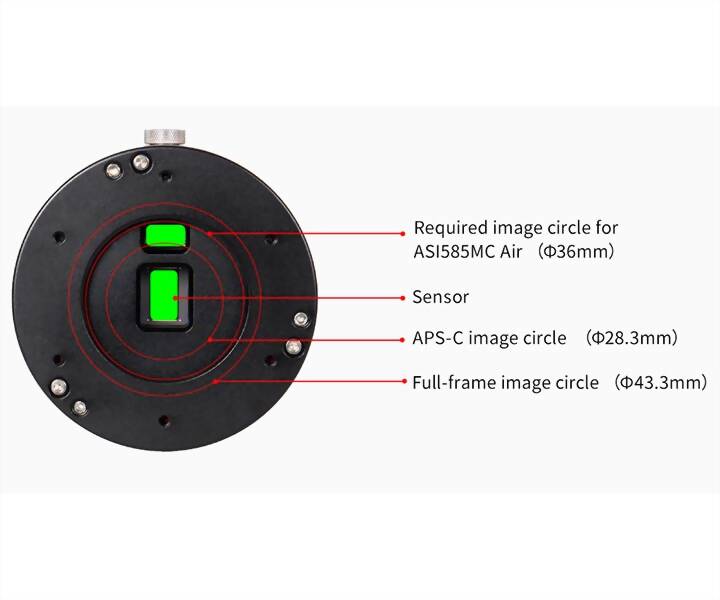 Der Hauptsensor IMX585 hat ein 1/1,2-Zoll-Format und eine Gesamtauflösung von 8,28 MP. Die Sensorgröße beträgt 11,2 mm in der Breite und 6,3 mm in der Höhe, die Diagonale 13,2 mm. Die kleine Pixelgröße von 2,9 µm x 2,9 µm ermöglicht eine hohe Auflösung und eine gute Full-Well-Kapazität von 40.000 Pixeln.