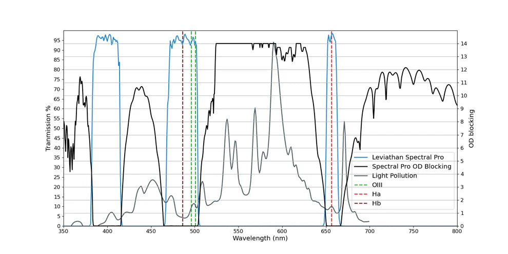Designed & Manufactured in Europe - The LEVIATHAN Spectral Pro is a next-generation light pollution suppression filter, designed using real-world spectral data from cities right across the globe. It selectively blocks actual skyglow sources while preserving the critical emission bands used in deep-sky imaging.