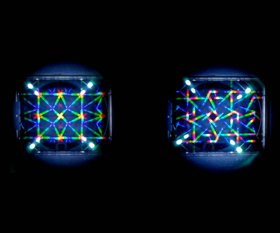 Um auch bei hellem Tageslicht eine qualitativ hochwertige Kollimation zu erreichen, setzen Sie den Kollimator einfach in Ihren Fokussierer ein und befolgen Sie ggf. die entsprechende Bedienungsanleitung Ihres OTA. Dieser Kollimator verfügt über zwei grundlegende Betriebskonfigurationen: einen Refraktormodus mit aktiven weißen LEDs und einen Newton-/Reflektormodus mit aktiven roten LEDs. Darüber hinaus gibt es einen dritten Betriebsmodus mit ausgeschalteten LEDs, der für andere OTAs vorgesehen ist.